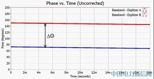 圖 9. 校準(zhǔn)過后的相位同調(diào) RF 擷取通道「Phase vs. Time」