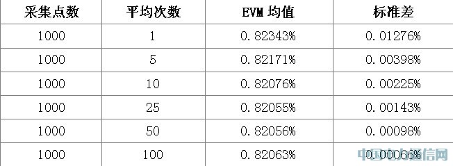 表3. 在不同的平均次數的情況下的EVM和標準差。