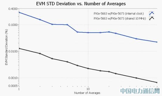 使用PXIe-5663 RF 矢量信號分析儀和PXIe-5673 矢量信號發生器,你可以很容易地實現優于1%的EVM測量。表3所示為更重配置下實現的均值和標準差。