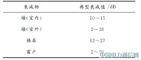 在室內(nèi)無線通信時,電磁波會受到墻壁、門窗等阻擋物的衰減,在工程應用中可按表2選取衰減值。
