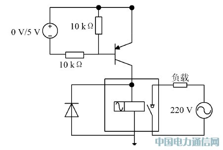 微控制器的輸出信號經晶體管驅動后作為繼電器的輸入信號。當微控制器的輸出為低電平時晶體管飽和,驅動繼電器通電吸合,負載通電;當微控制器輸出為高電平時,晶體管截止,繼電器斷電釋放,負載斷電。因此通過遠端管理機可以控制用電器的開關。