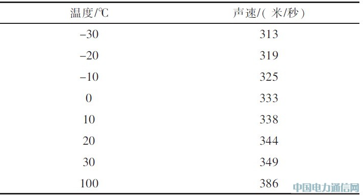 由于超聲波屬于聲波范圍,其波速c與溫度有關,經過測量得出超聲波的波速與溫度的關系,如表1所示。
