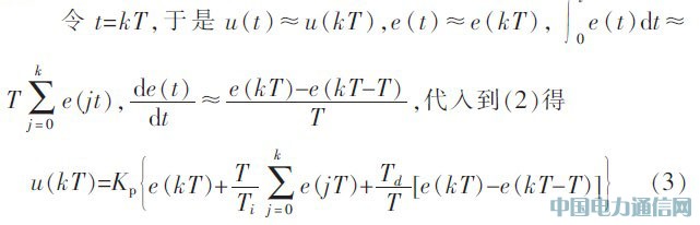 PID控制的形式多種多樣,常用的通常有位置式和增量算式。根據對象的特點,該系統采用PID增量式控制算法。所謂的PID的增量算式,就是根據式(3)計算出u(kT-T),通過計算△u(kT)=u(kT)-u(kT-T)得到PID增量算△u(kT),即第k次采樣輸出算式為:
