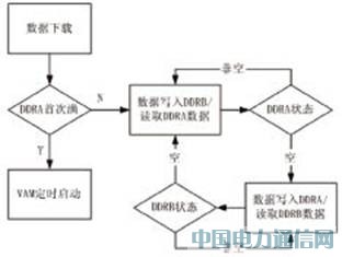 當(dāng)定時器計時到定時數(shù)據(jù)代表的時間點時將該時刻的衰減值下發(fā)到對應(yīng)通道的衰減器上,實現(xiàn)無線信道衰減隨時間動態(tài)變化的場景;同時FPGA繼續(xù)將CPU下發(fā)的數(shù)據(jù)寫到DDRB中。當(dāng)DDRB充滿后,CPU暫停下發(fā)數(shù)據(jù),直到DDRA數(shù)據(jù)讀取完畢,此時FPGA切換到讀取DDRB的數(shù)據(jù),繼續(xù)向DDRA寫入新的數(shù)據(jù)。
