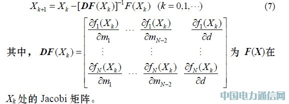 采用牛頓迭代法,設已得到第k 次近似解Xk,則可得: