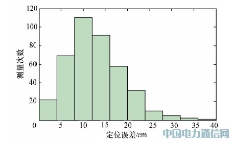 圖4 給出了400 次定位結果誤差分布。可以看到,節點位置誤差基本上在0.3 m 之內,平均誤差為0.1 m 左右。