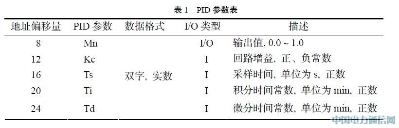 PID 指令根據表格(TBL)中的輸入和配置信息對引用LOOP執行PID 循環計算。在執行PID 指令前,要建立一個參數表,一般要對表1 中的參數進行初始化處理。