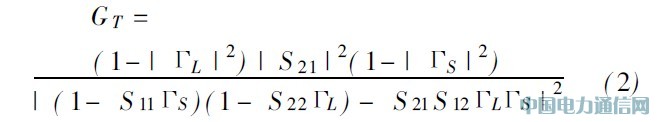 其中,PL 為負載吸收的功率,PA 為信號源的資用功率。用放大器的S 參數和反射系數可表示為: