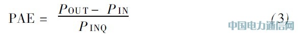 其中,POU T 為射頻輸出功率,PIN 為射頻輸入功率,P INQ 為直流輸入功率。它既反應了直流功率轉化為射頻功率的能力,又反應了放大射頻功率的能力。