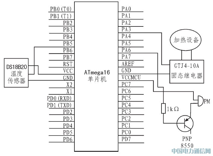 本系統主要采用高性能AVR單片機,GTJ4-10A固態繼電器,DS18B20溫度傳感器,報警輸出電路。主要系統電路圖略。
