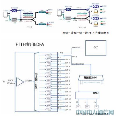 在廣電現有的資源基礎上,要實現FTTH有兩種方案:兩纖三波和一纖三波。但考慮到現有部分廣電采用了CMTS,EOC等技術,兩纖三波會有不同程度上的建設成本浪費和維護上的弊端,最主要的是市場的覆蓋和占有較慢。同時網絡管理上也不能實現端到端的管理,對CA破解沒有很好的抑制手段。