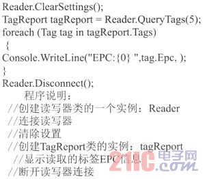 程序設計:將讀寫器底層協議LLRP.dll,Impinj.LLRP.dll,開發包動態鏈接庫文件Impinj.OctaneSdk.dll導入到開發項目中,程序核心代碼為: