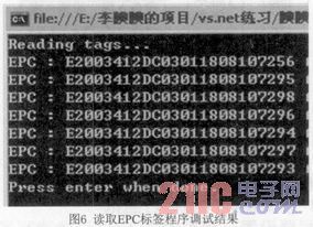 通過讀寫器與上位機串行通信程序調試可得到標簽的EPC編碼以及用戶區信息,之后將EPC數據存儲到數據庫中即可