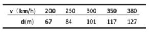 表1 不同車速時基站到鐵軌之間的最小垂直距離計算