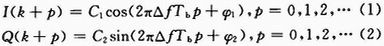式中:C1,C2,φ1,φ2為和采樣速率、解擴數據起點位置、擴頻碼長度有關的常數;△f為經過掃頻和信號捕獲后的剩余頻差,這里△f的取值范圍為(-5,5)kHz;Tb=1/Rb為擴頻前的符號周期,Rb為符號速率,本系統中Rb=10 Kb/s;p為信號捕獲后依次解擴出來的帶有頻偏的符號數據的次序號。