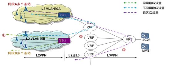 與個GSM/TD-SCDMA相比,LTE更具技術(shù)優(yōu)勢,主要體現(xiàn)在高數(shù)據(jù)速率、分組傳送、延遲降低、廣域覆蓋和向下兼容等方面。LTE時代和之前的GSM/TD-SCDMA相比網(wǎng)絡(luò)結(jié)構(gòu)也出現(xiàn)了重大變革,無線基站控制器RNC/BSC的部分功能下放到了eNodeB 側(cè),減少了網(wǎng)絡(luò)層次,使得網(wǎng)絡(luò)變得更加扁平,這種網(wǎng)絡(luò)架構(gòu)有利于簡化網(wǎng)絡(luò)架構(gòu)和降低延遲,實現(xiàn)了低時延、低復(fù)雜度和低成本的要求,但與此同時也對承載網(wǎng)絡(luò)提出了更高的要求:比如,LTE階段eNodeB會歸屬到多個SGW即S1-Flex 問題,以及基站和基站之間的X2流量互通問題,這兩個多點對多點的通信問題都需要承載網(wǎng)解決。由于基于IP的L3轉(zhuǎn)發(fā)天然支持多點對多點通信,因此考慮在網(wǎng)絡(luò)中引入L3功能可以順利解決上述困難。