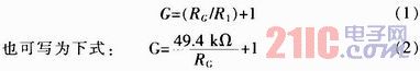 1)式中RG為AD620內部電阻,R1為外部電阻。由(1),(2)式可看出,(1)式中RG大小為49.4 kΩ。