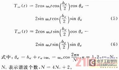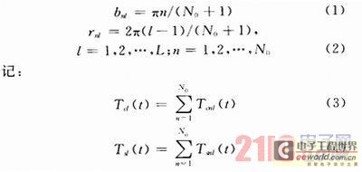 Jakes在參考文獻中介紹了一種單徑衰落信道的仿真,且在此基礎上提出了一種對頻率選擇性衰落信道的仿真方法。在原來第l徑中的多普勒相移bnl的基礎上,加上一個附加相移rnl,成為新的多普勒相移bnl+rnl,且保持其他參數不變。為了保證各個可分辨多徑之間相互獨立,所以必須選擇合適的bnl和rnl,其中比較簡單的一種方法是: