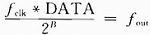 ,其中fclk為開發工作時鐘,DATA為輸入的頻率控制字,B為DATA的位寬,fout為所得的頻率。