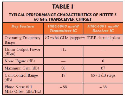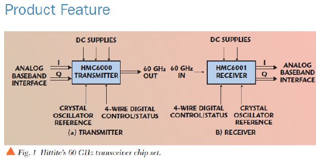 很多重要的開發(fā)開始用57-64GHz頻段,Hittite現(xiàn)在可以提供高集成的硅芯片方案。Hittite的HMC6000/6001芯片組不僅解決很多毫米波頻率關(guān)鍵的技術(shù)挑戰(zhàn),而且可以提供數(shù)Gbps的60GHz通信turn-key連接方案