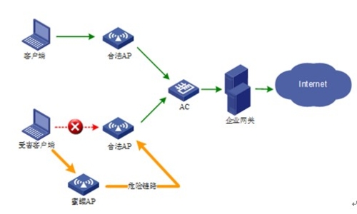 WLAN發展至今,在安全性上也做了不少改進。比如加密認證體系已經由原來的WEP過度到了802.11i。企業通過802.1X認證與CCMP強加密,可以最大限度的保護無線數據安全,即使惡意攻擊者監聽到了這些報文,由于報文已被強加密,因此他還是無法還原出原始數據。但是,使用802.11i仍然無法完全保護企業無線網絡不受惡意攻擊。例如,攻擊者可設置蜜罐AP誘惑用戶連接、或通過泛洪(FLOOD)各種WLAN協議報文使企業無線網絡無法使用。