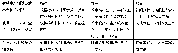 表1 WLAN產品射頻生產測試方式