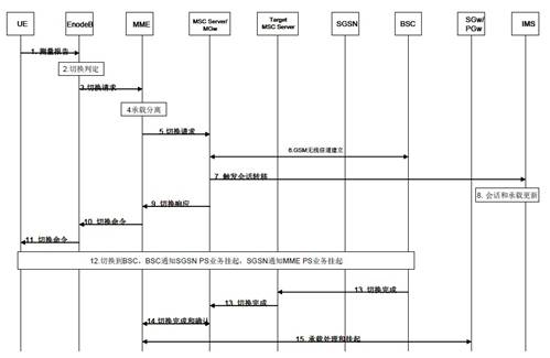 LTE 向GSM 網絡漫游,且不進行DTM(Dual Transfer Mode)的SRVCC 簡要切換流程如下。