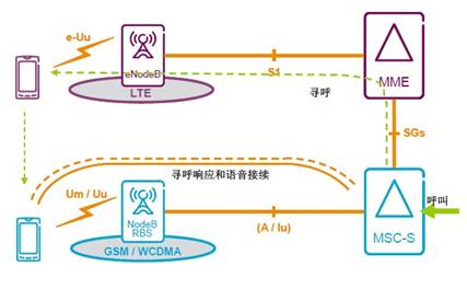 ? MME 通過SGs 接口維系用戶在LTE 網絡MME 上和GSM/WCDMA 網絡MSC Server 上的同時登記, 該登記在用戶終端發起EPC/IMSI 雙附著時完成, MME 通過終端的GUTI 提取LAI 和VLR 局號碼訪問對應的MSC Server。