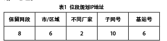 ● 統一管理PTN L3網絡IP地址規劃,保證基站IP地址在全網的唯一性,便于統一管理,以及便于后續擴容需求,建議采用表1位段規劃IP地址。