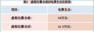 虛擬化整合后系統實際功耗約為4.2千瓦,每年電費約為2.9萬元。5年內的電費支出約為14.5萬元,如表3所示。