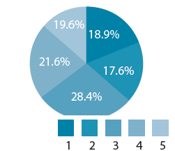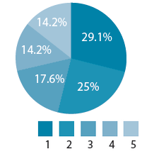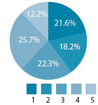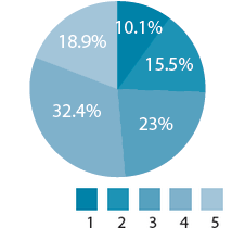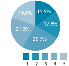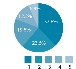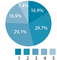 圖5 受訪視頻企業/機構對“目前最大的問題是對于OTT視頻的保護力度不夠,盜版盛行”的緊迫性排名的調研結果。圖例中:“1”代表“認為最緊迫”,“5”代表“認為最不緊迫”。