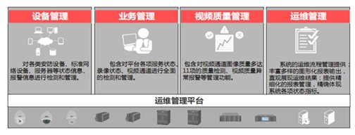 運(yùn)維管理平臺(tái)主要包括四部分內(nèi)容:設(shè)備管理、業(yè)務(wù)管理、視頻質(zhì)量管理及運(yùn)維報(bào)表管理。
