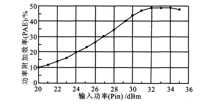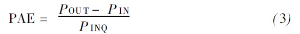 其中,POU T 為射頻輸出功率,PIN 為射頻輸入功率,P INQ 為直流輸入功率。它既反應了直流功率轉化為射頻功率的能力,又反應了放大射頻功率的能力。