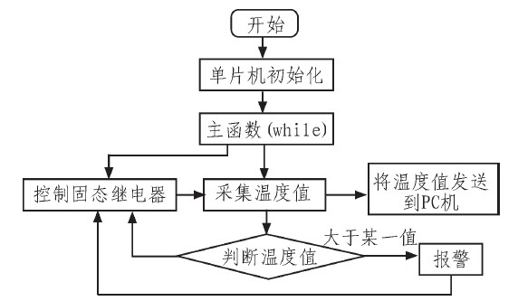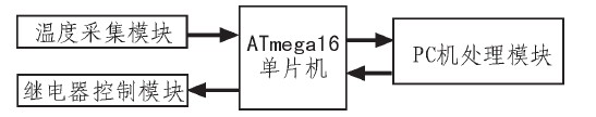 本系統由溫度采集模塊,固態繼電器控制模塊,單片機模塊,PC機軟件處理模塊。4個模塊加起來實現溫度的控制,以及溫度采集和溫度經過軟件處理的分析。它們的邏輯關系如圖1所示。