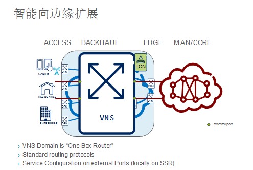 由于采用了將控制層和傳輸層分離的架構,本來區別巨大的城域網和接入網(移動回傳網),就只有“量”的區別,不存在“質”的區別了。目前的城域網設備都是昂貴的高端高智能設備,而接入網甚至僅僅工作在二層,雖然也有些三層需求,但非常有限,對性能要求也不高。到了智能傳輸的分離架構時代,由于都受控于分離的控制層,城域網的傳輸層和接入網的傳輸層,僅僅有傳輸性能的區別了。因此,在智能城域網構架完成后,可以很方便的將其擴展到接入網(移動回傳網)領域。