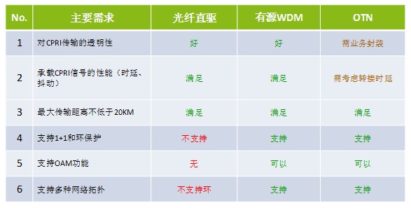 下面對幾種目前可選的CPRI傳輸方式進行比較分析比較: