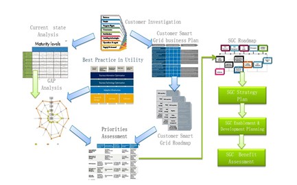 全球電力企業(yè)在智能電網的發(fā)展階段差別很大,在通信上的差別更大。SGCMM主要通過以下流程來為智能電網通信進行評估和分析,如圖三所示: