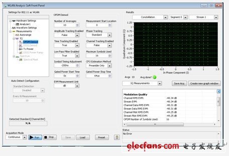 圖2. 利用NI WLAN分析工具包可方便地使用NI PXIe-5644R進行測量。