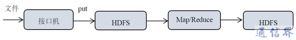 傳統基于MapReduce大數據處理技術實際上是一種批處理方式,如圖1所示。批處理模式首先要完成數據的累積和存儲,然后Hadoop客戶端將數據上傳到HDFS上,最后才啟動Map/Reduce進行數據處理,處理后再寫入到HDFS。這種方式必須要所有數據都要準備好,然后統一進行集中計算和價值發現,無法滿足實時性的要求。