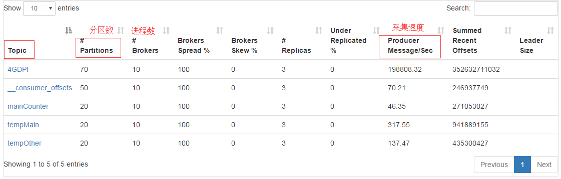 數據源是gzip壓縮文件,因為flume原生不支持.gz或.tar.gz文件格式,所以修改了Flume底層代碼,實現對壓縮文件的處理,省去了解壓時間。Flume采集文件時以用戶手機號碼作為分區的key,將同一號碼的數據分到同一分區,便于去重。通過Kafka集群管理工具,Kafka Manager[17]可以很好地監測Kafka集群的狀態。Kafka集群生產者如圖7所示: