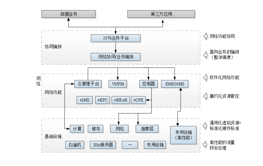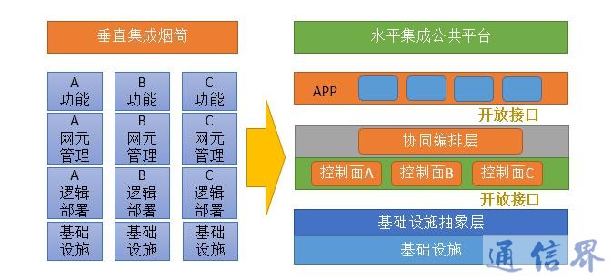 最后,網絡要走向運營開發一體化,在現行的網絡運營模式下,廠家與運營商之間都是簡單的售賣方式,主要由“供給”決定“需求”,未來的網絡需要達到用戶對網絡的定制化要求,通過分離網絡的軟件與硬件,引入IT設備等多種手段達到由簡單的售賣到創新驅動發展的目的。
