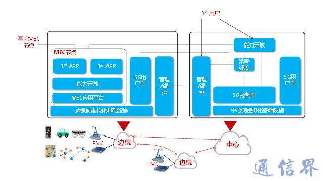 在邊緣云之上,移動/多接入邊緣計算(Mobile/Multi-Access Edge Computing, MEC)技術(shù)主要是指通過在靠近無線接入側(cè)部署通用服務(wù)器,從而為無線網(wǎng)絡(luò)提供IT和云計算的能力,使應(yīng)用、服務(wù)和內(nèi)容可以實現(xiàn)本地化、近距離、分布式部署成為可能,從而促使無線網(wǎng)絡(luò)具備低時延、高帶寬的傳輸能力,并且回傳帶寬需求的降低極大程度地減少了運營成本。同時,MEC定義了完整的網(wǎng)絡(luò)和第三方應(yīng)用的雙向通信的API通信機制,例如無線網(wǎng)絡(luò)可以把無線網(wǎng)絡(luò)上下文信息(位置、網(wǎng)絡(luò)負荷、無線資源利用率等)通過API開放給第三方業(yè)務(wù)應(yīng)用,有效提升了移動網(wǎng)絡(luò)的智能化水平,促進網(wǎng)絡(luò)和業(yè)務(wù)的深度融合。