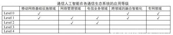 以及在整個通信系統當中,不同成熟度的通信人工智能的應用等級: