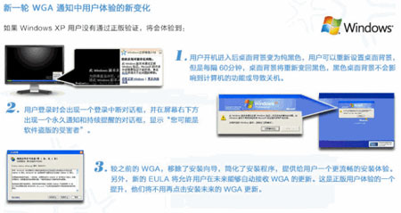 10月14日,據(jù)微軟內(nèi)部郵件顯示,10月20日微軟將在中國(guó)再次對(duì)盜版WindowsXP進(jìn)行打擊,并首次對(duì)盜版Office進(jìn)行驗(yàn)證,盜版用戶的Windows XP及Office將被強(qiáng)制插入多出明顯的提醒標(biāo)識(shí)。微軟公關(guān)部證實(shí)了此事,并表示稍后將公布對(duì)于Windows正版增值計(jì)劃 (WGA)和Office正版增值計(jì)劃(OGA)的具體細(xì)節(jié)。