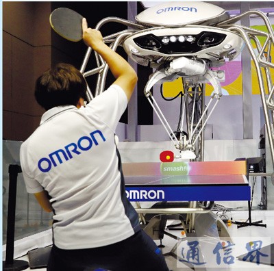 工作人員在歐姆龍展臺與機器人打乒乓球。 新華社記者 方喆攝 |