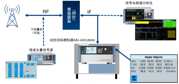 目前,業界對感知能力的技術驗證和測試大多基于實際物體,測試場景有限、模擬目標的數量單一并且設置不靈活。而R&S公司最新的動態目標模擬器R&S® AREG800A可以生成多個具有不同距離、大小、徑向速度和角方向的動態目標,并且可以通過增加前端數以實現更多目標的模擬。搭配不同的變頻器模塊,可以實現基于Sub-6G、毫米波甚至太赫茲頻段的通感一體化測試。