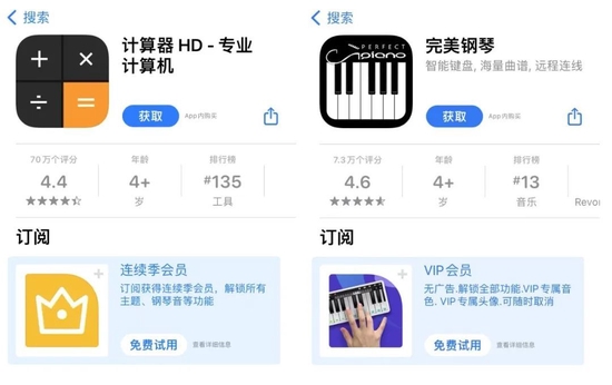這些軟件依靠蘋果獨特的Apple pay賬單支付功能,先是提供免費下載,吸引用戶下載;然后再給予用戶3天的試用期;等到三天之后,沒有卸載軟件的用戶就會面臨每周/每月,數十元到數百元不等的訂閱費。