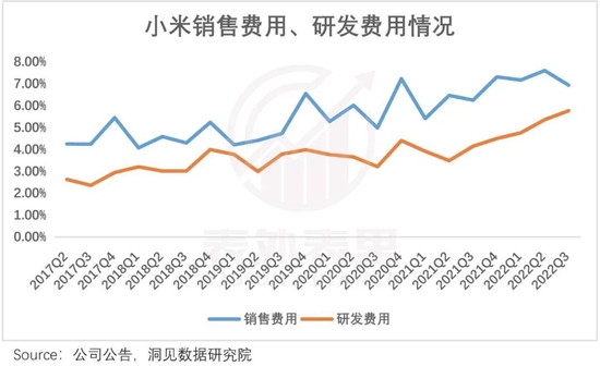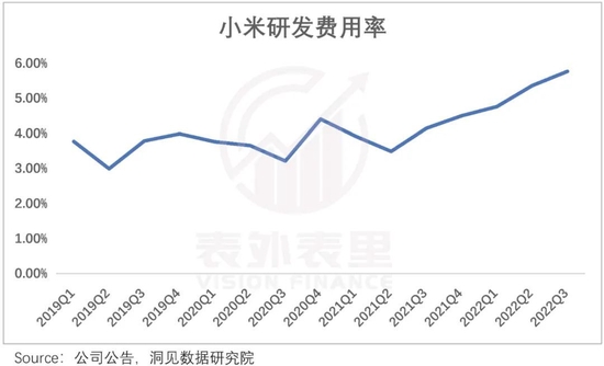 這在資源支持上已有反饋。如下圖,2022Q3小米研發開支由去年同期的32億元升至41億元,同比上漲25.7%。