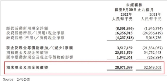 但另一方面,也進一步加劇了小米資金壓力。如下圖,截至2022年9月30日,小米期末現金及現金等價物為280.71億元,相較上年同期下滑14.02%。