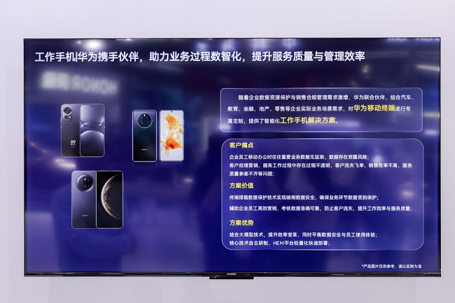 在數字化轉型過程中,越來越多的企業要求終端設備既能夠保障數據資源安全防止敏感信息泄露,又要為日常業務、營銷業務合規辦理、高效辦理提供助力。華為擎云基于企業場景化需求,攜手合作伙伴對華為移動終端進行專屬定制,提供了工作手機方案。